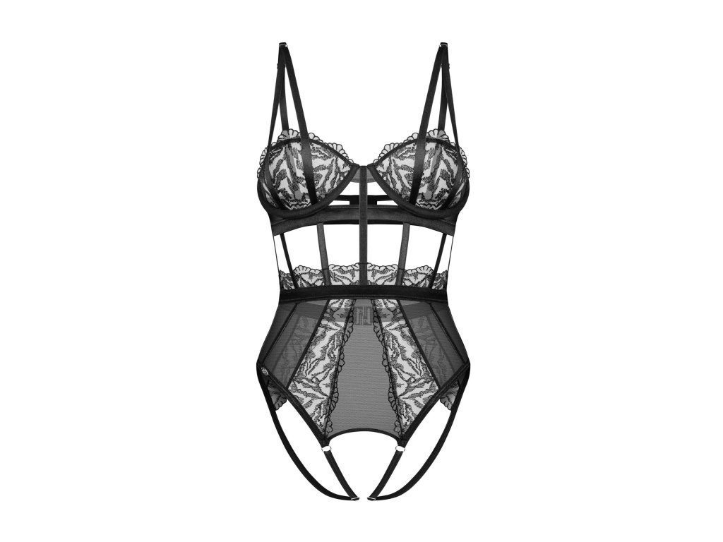 Dámské svůdné body otevřené Hersis Crotchless Teddy černé - Obsessive
