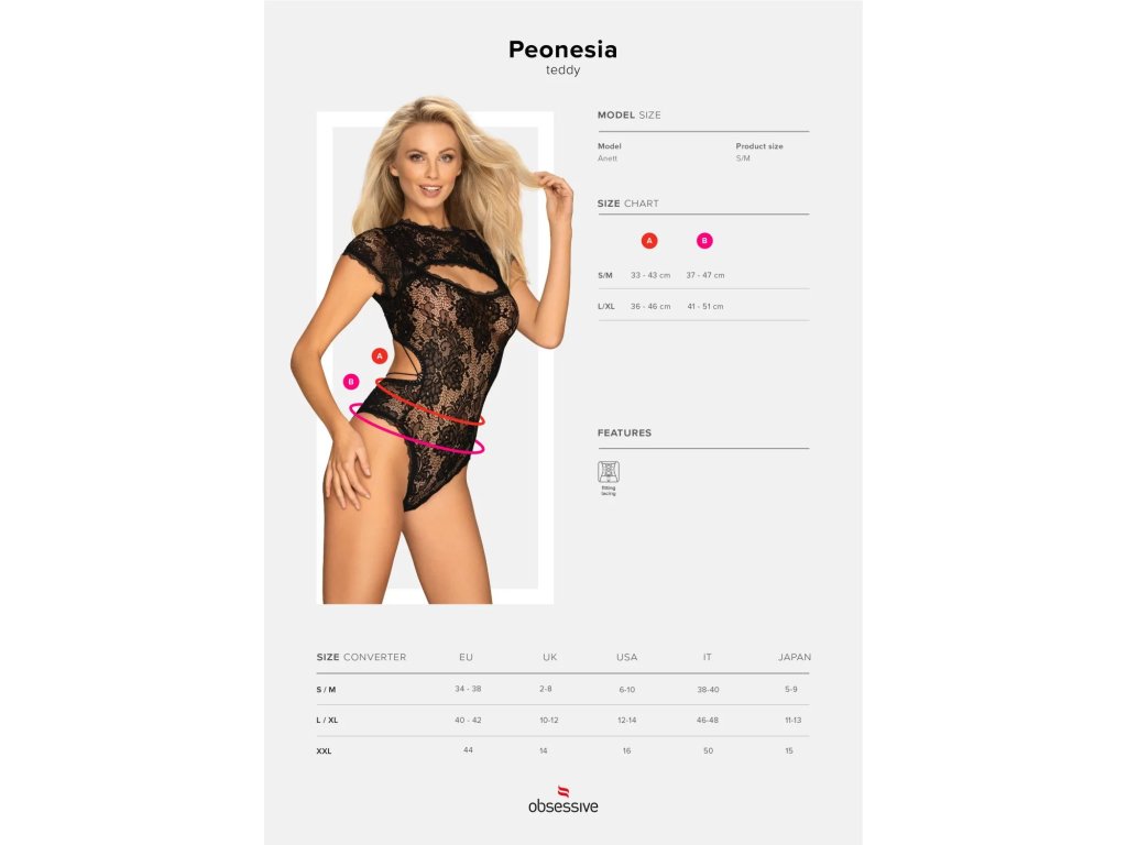 Body PeonesiaPodívejte se na tohle lákavé krajkové body. Může být velmi brzy již jen vaše. Navlékněte si jemnou a smyslnou krajku a ode dneška se jistě stanete velkým fanouškem našeho sexy spodního prádla Obsessive!