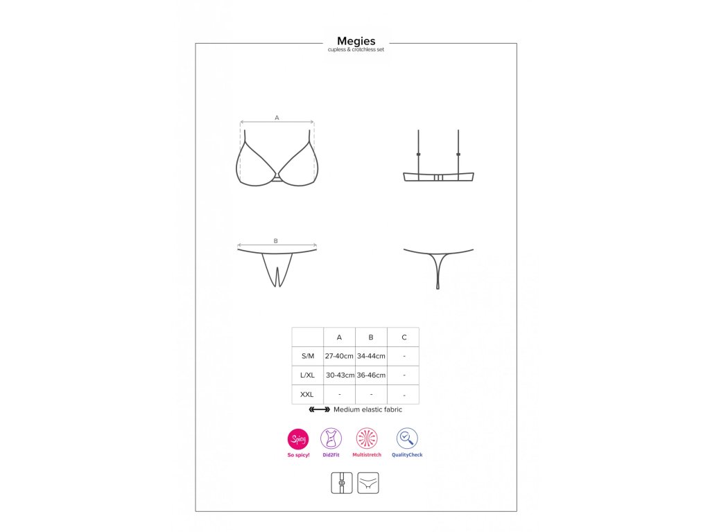 Megies setV tomto super pikantním setu můžete ukázat mnohem více než se zdá! Sexy páskový design podprsenky a kalhotek s otevřeným rozkrokem - jste připraveni přidat na potěšení ve vaší ložnici?