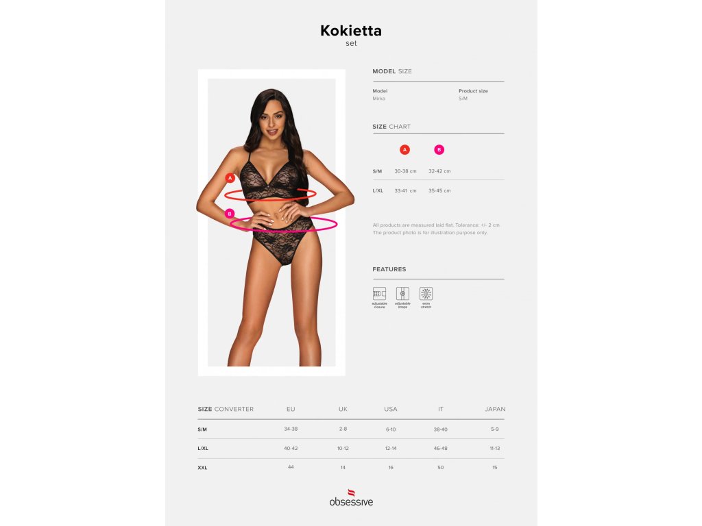 Hledáte zábavnou sadu, u které si zamilujete každý detail? Podívejte se na Kokiettu. Kombinace černého materiálu, jemného květinového vzoru a klasického střihu je sex-appealová bomba! Efekt bude úžasný!