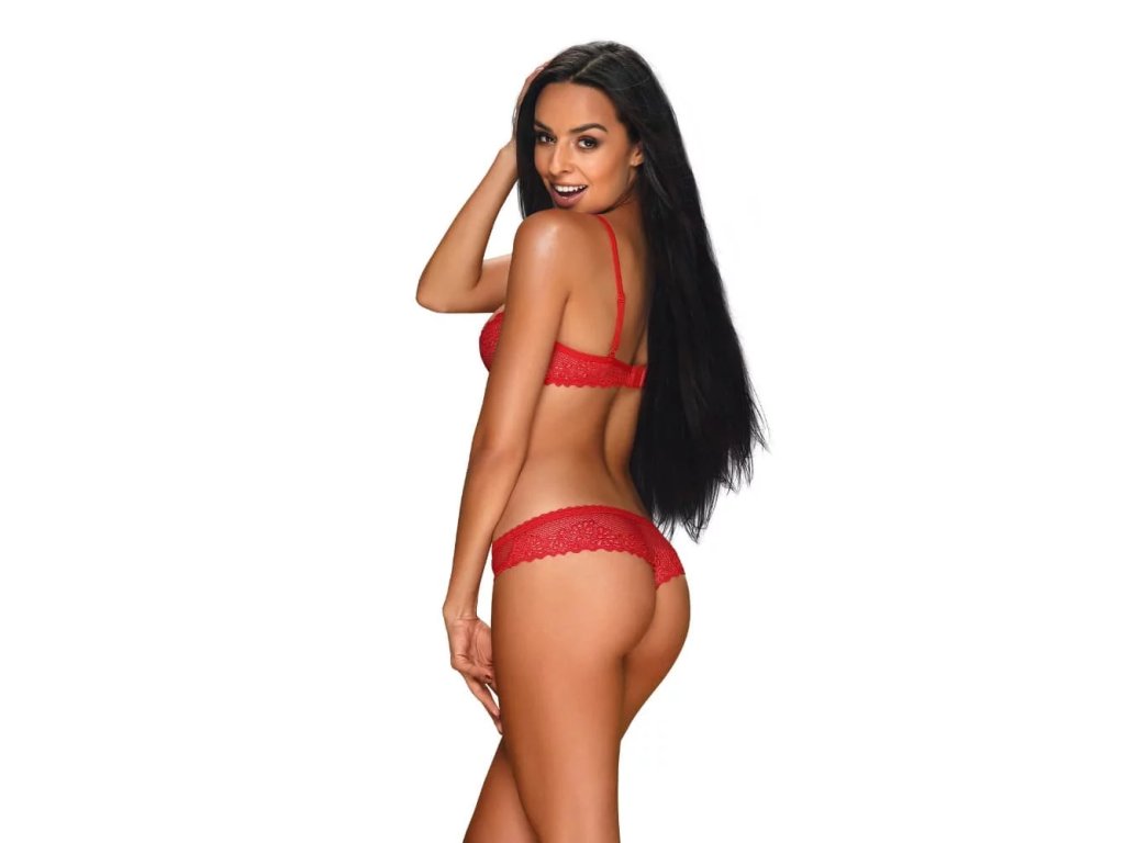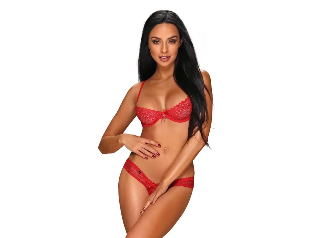 - jedinečný, červený set s poloviční podprsenkou (half-bra) - limitovaná barevná edice