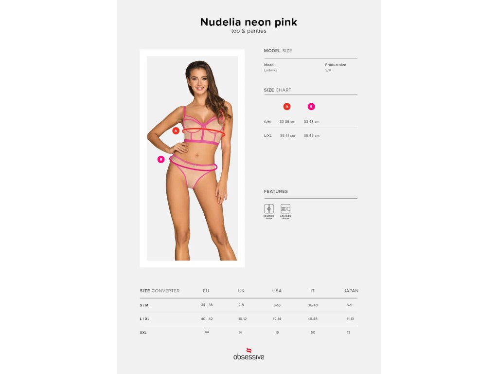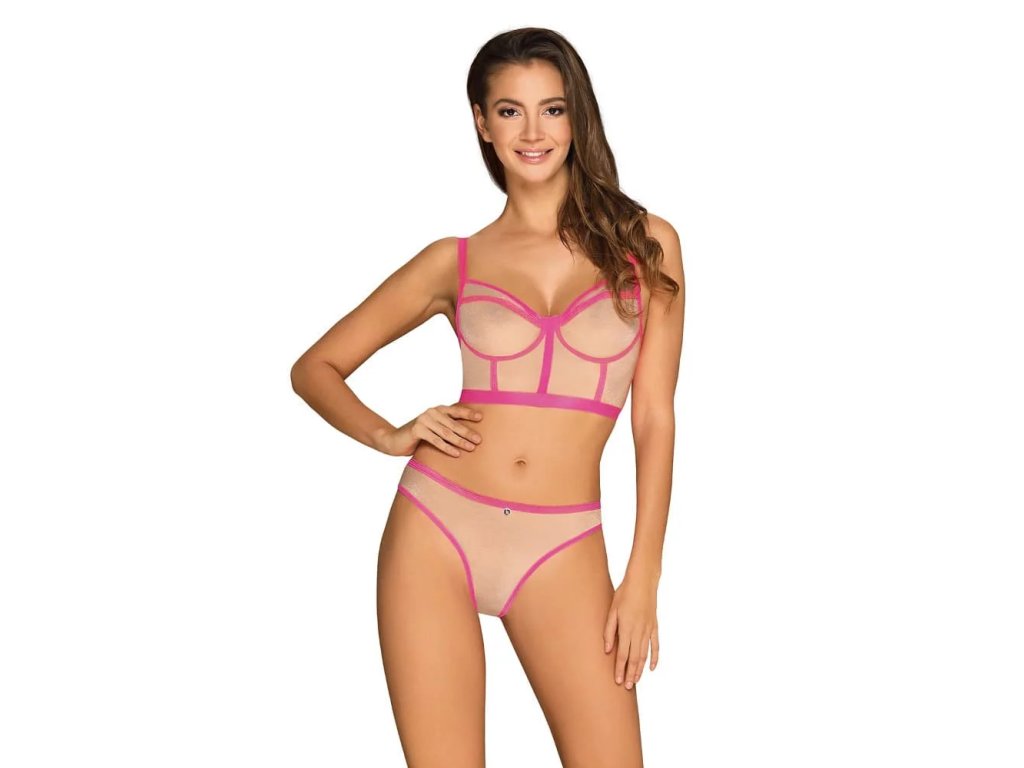 Smyslný set Nudelia top & panties neon pink - Obsessive