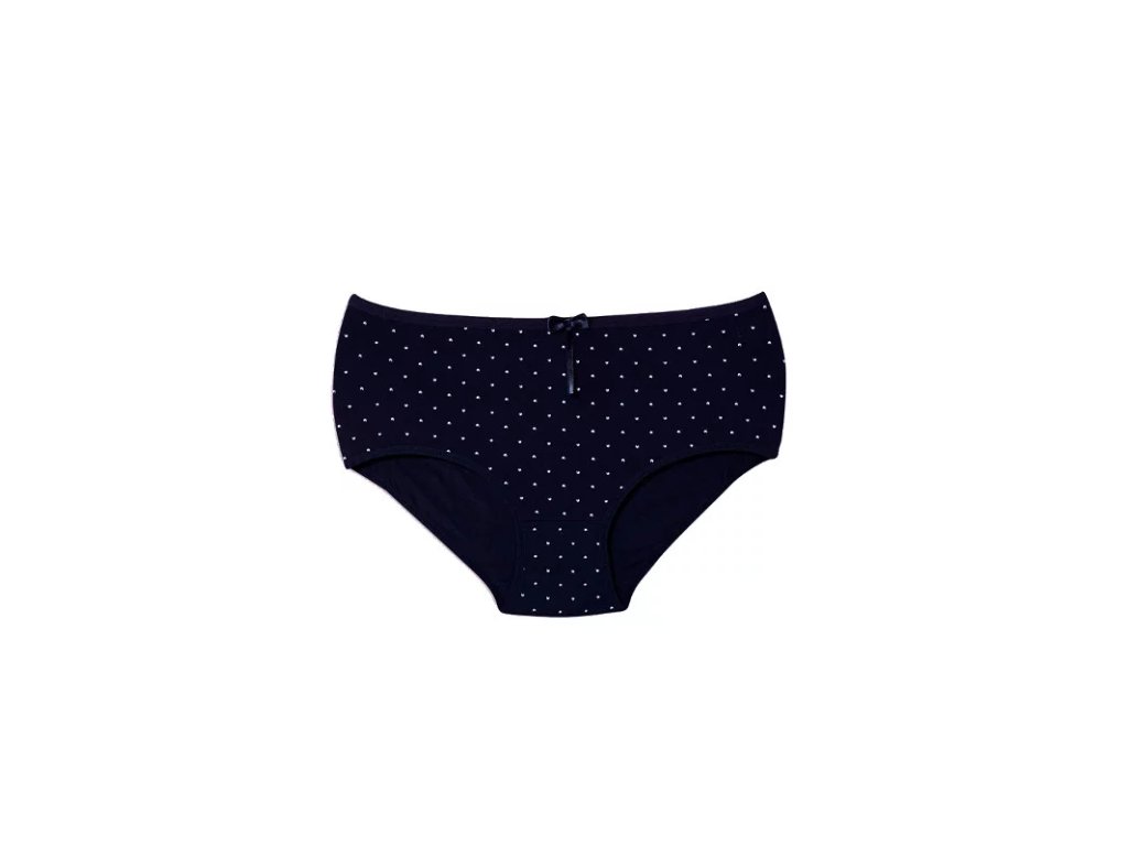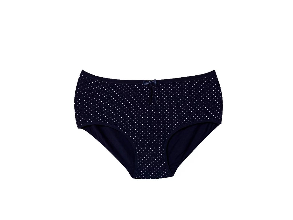 Klasické dámské kalhotky, které jsou ozdobené puntíky.V pase modelu je malá mašlička. Kalhotky jsou balené po dvou kusech ve fóliovém sáčku.