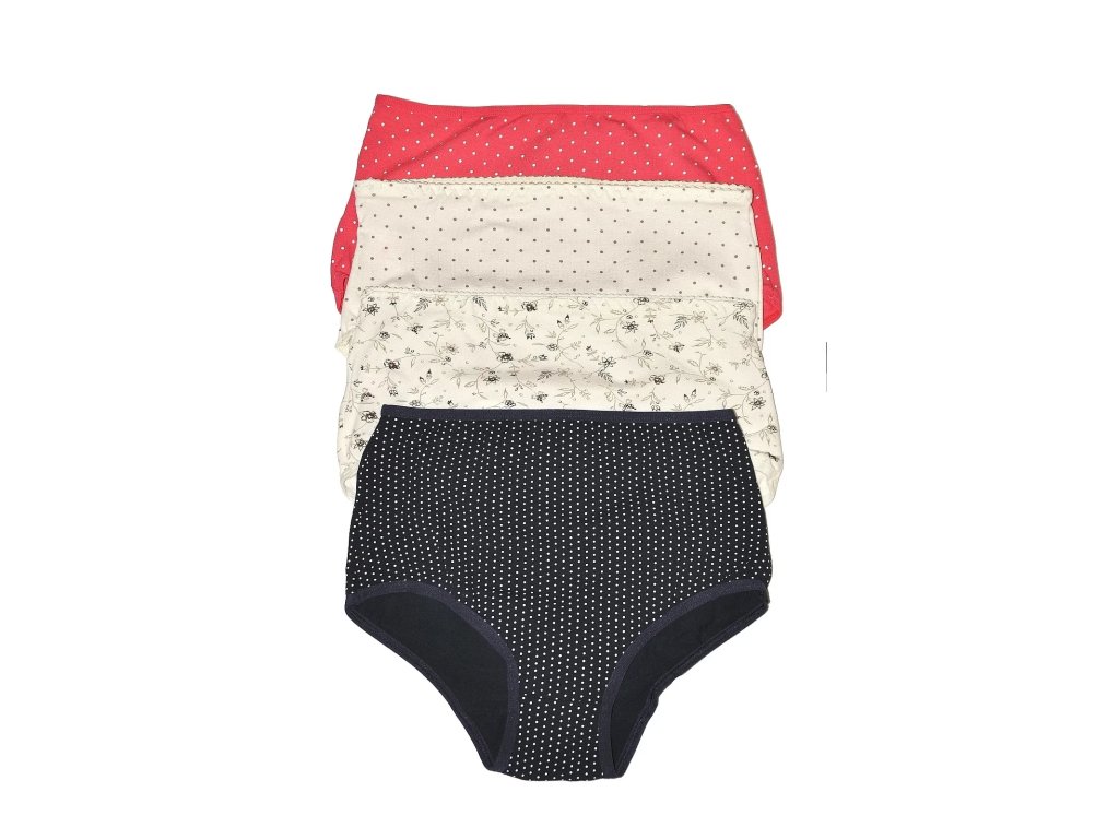 Vysoké dámské kalhotky, se širokou boční částí, dekorované vzorem s puntíky a kvěitnami.