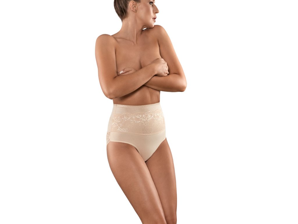 Kalhotky s vyšším sedem, které modelují postavu a jsou zvýrazněné krásnou jemnou krajkou. Pokud hledáte spodní prádlo, které zlepší tvar vašeho bříška a boků, zeštíhlí a zeštíhlí tuto oblast, a máte ráda měkké materiály a ženský půvab - zvolte tento model. Speciální zóny jsou pro vás výhodné. Krajkový pásek se vymyká obvyklým standardům a ukazuje, že modelování spodního prádla může být jednoduše funkční, ženské a krásné. Linie hýždí je také krajková. Složení: 92 % bavlna, 8 % elastan. Pás 87 % polyamid, 13 % elastan.Velikost