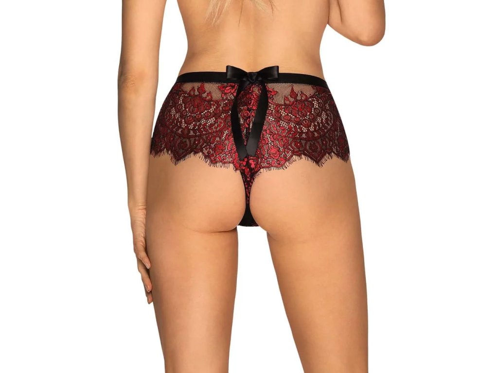 Sníte o spodním prádle, které dokonale podtrhne vaši ženskost? Máme pro vás něco, v čem budete vypadat velmi sexy - kalhotky Redessia. Ujišťujeme vás, že vaše půvabně mašličkou zdobená záda a atraktivní červená krajka zahřejí zimní večery... a vy ho budete svádět podmanivou průsvitnou černou barvou a svůdně zvýrazněnými hýžděmi.