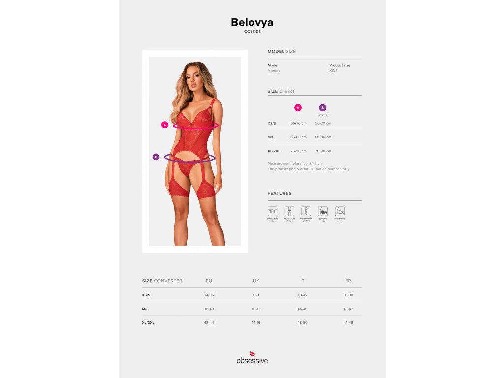 Korzet Belovya s podvazkyPikantní chvilky ve dvou budou nyní ještě příjemnější! Seznamte se s neuvěřitelně sexy korzetem Belovya, který láká svou šťavnatou barvou a ohromuje jedinečným střihem. Vyberte si tento smyslný model s podvazky a zvyšte teplotu slastných nocí na maximum! Žhavé pocity - je čas, začněte!