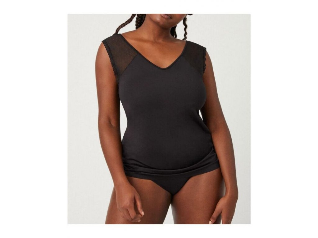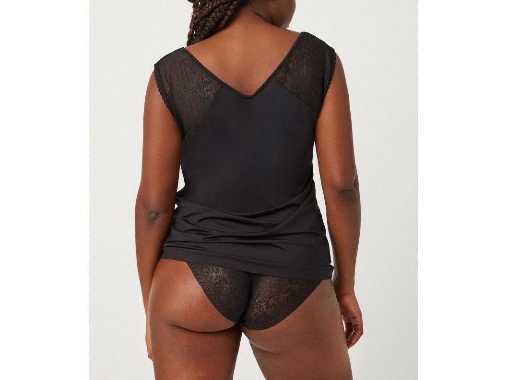 Dámská luxusní krátká košilka na hrubé ramínka, s krajkou u krku.