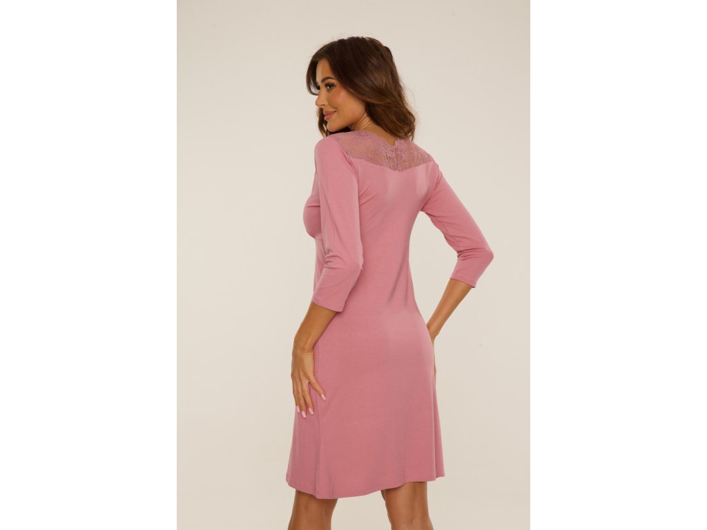 Dámská košile se 7/8 rukávy z jemné viskózy s elastanovými kosticemi. Výstřih a záda jsou zdobeny jemnou krajkou, pod prsy gumičkou. Délka košile je pod kolena.Složení: 94% viskóza, 6% elastan