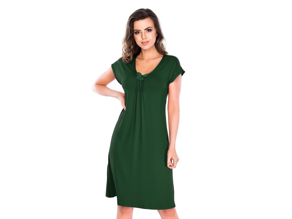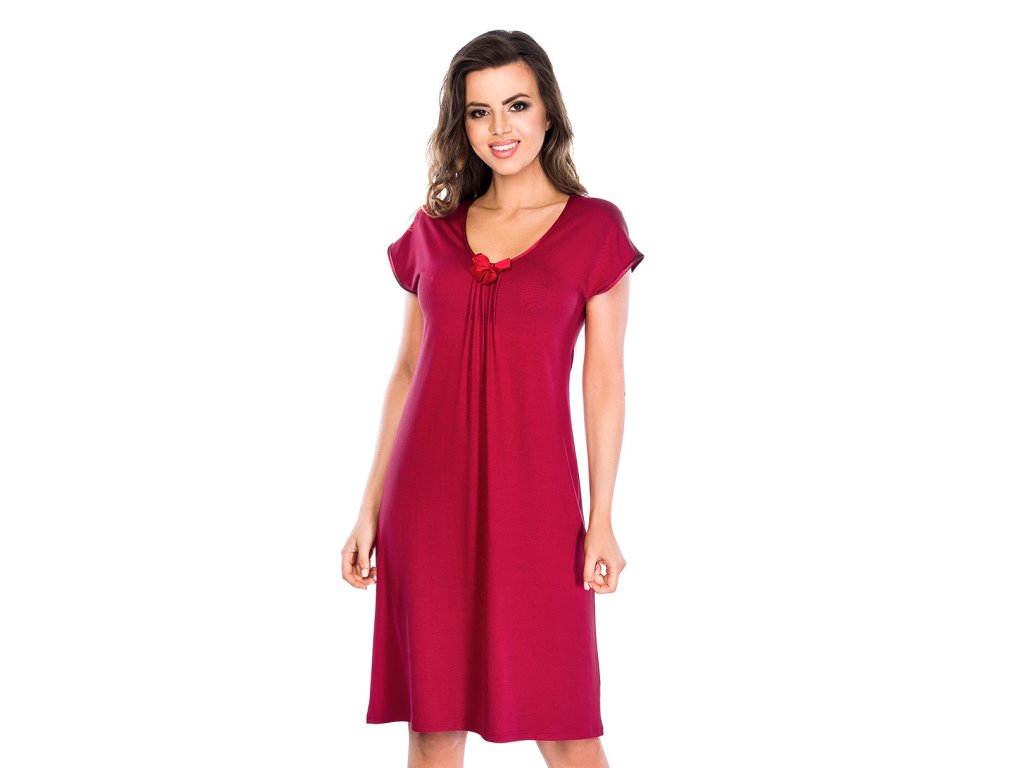 Dámská noční košile s krátkými rukávy.Košile je vyrobená z velmi kvalitní viskózy s přídavkem elastanu. Půlkulatý výstřih je obšitý saténovou lemovkou, ozdobený mašličkou a jemným nařasením.