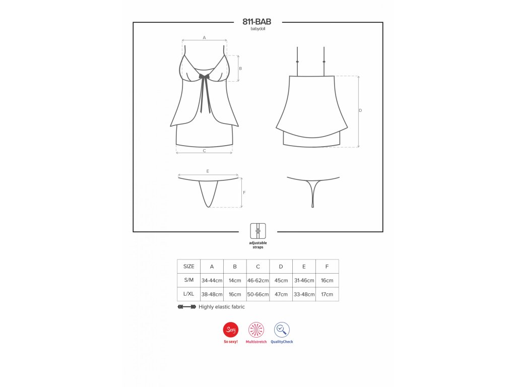 811-BAB-4Tato babydoll je velmi jemná a neuvěřitelně sexy. Nemůžete se dočkat, až ji obléknete? Oó, ano! Objevte všechny její krásné detaily a nechte je ozdobit vaše sexy křivky! Takto okouzlíte svého partnera. A to je perfektní plán pro dnešní noc, takže, už se stmívá... začněte.