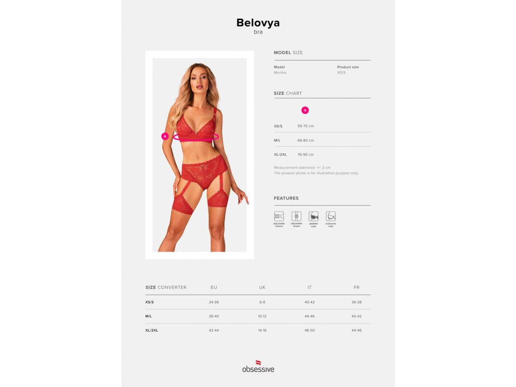 Belovya podprsenkaPodprsenka Belovya plná sex-appealu a extrémně ženská, do které se bláznivě zamilujete! Vášnivá červená barva svádí a krásně zvýrazňuje tón pleti a smyslný klasický střih dokonale podtrhuje poprsí a dekolt. Šperkový doplněk v podobě okouzlujícího, stříbrného kolečka vám dodá eleganci a košíčky s kosticemi dokonale pozvednou a podepřou ňadra. Už víte, že je musíte mít, že?