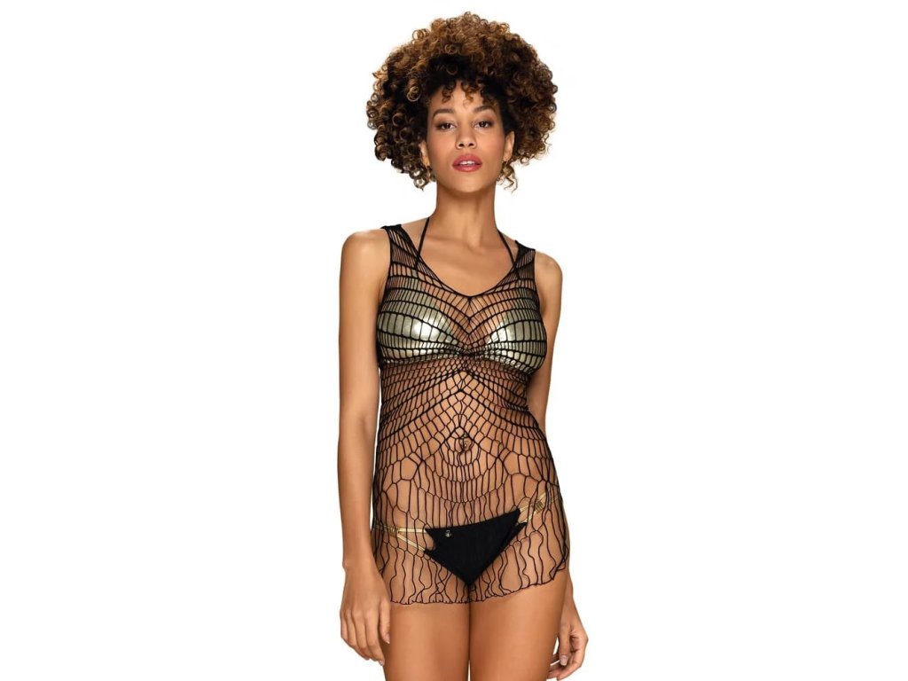 Šaty D607Šaty D607 Vás provedou úžasnými zážitky a povzbudí Vaši (a jeho) chuť na příjemné chvilky. Co potřebujete, abyste se cítili fantasticky? Sexy pavučinový vzor šatů a důraz na Vaše boky!