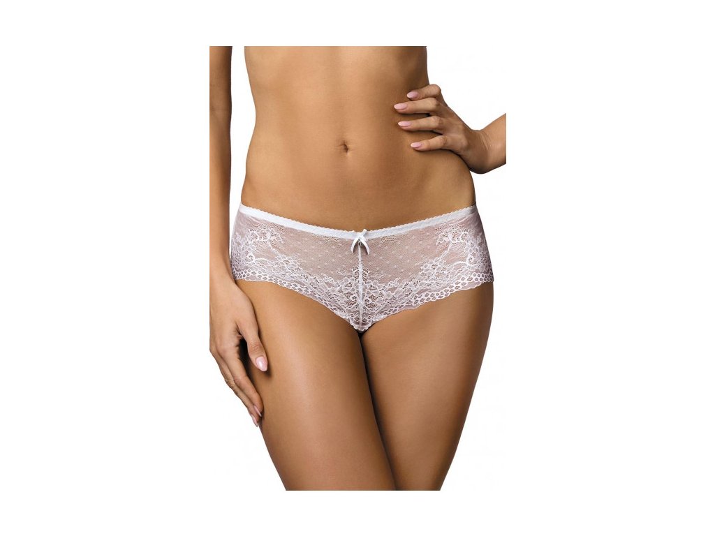 Smyslné šortky jsou vyrobené z rafinované krajky, zdobené květinovým motivem. Ve předu je lesklá mašlička. Bavlněný klín zaručuje pohodlní a komfort. Složení: 68% polyamid, 20% polyester, 7% bavlna, 5% elastan