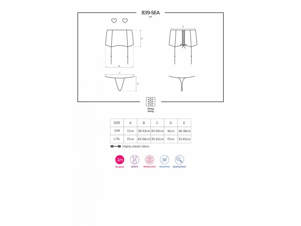 839-SEA-1Neuvěřitelně svůdný podvazkový pás a sexy tanga - jaká skvělá kombinace! A hádejte co? Okořenili jsme ji krytkami bradavek. Ty vám umožní připravit skutečně pikantní překvapení! Připravte se, oblečte se do tohoto lákavého setu a povzbuďte svého muže, aby se zúčastnil přichystané show. Můžete si být jisti, že požádá i o replay!