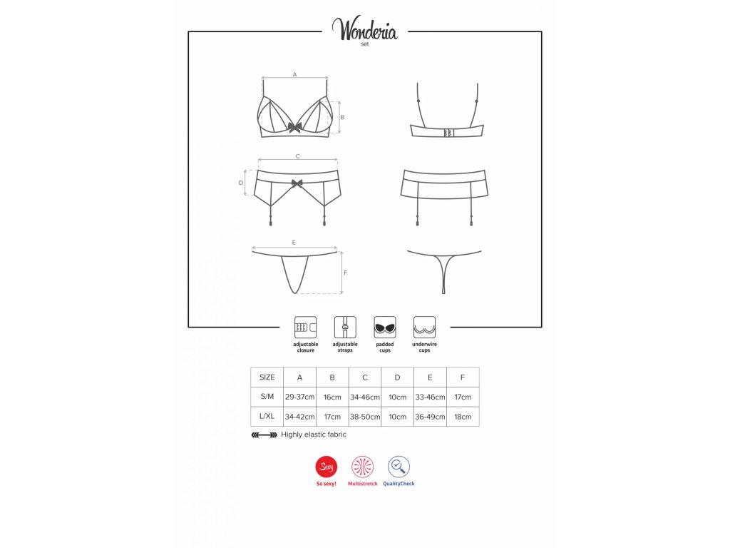 Wonderia setÚžasný design, smyslné krajky, koketní pásky, rozkošná mašlička a spousta sex-appealu. Wonderia se k vám hodí perfektně! Přidáme i špetku vaší pikantní fantazie. Teď je to prostě perfektní! A jste připraveni na další žhavé noci. Budou plné sladkých rozpustilostí mezi vámi dvěma!