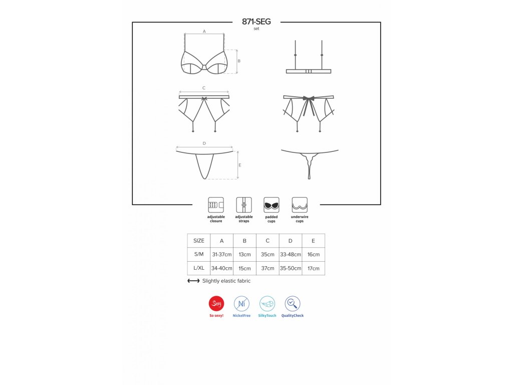 - set zahrnuje podprsenku, podvazkový pás a tanga